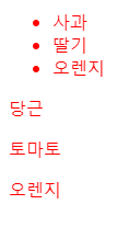 ▷ 오렌지라는 글자는 모두 클래스 선택자를 가지고 있고, 위의 하나의 오렌지라는 글자에만 id선택자를 가진다.
