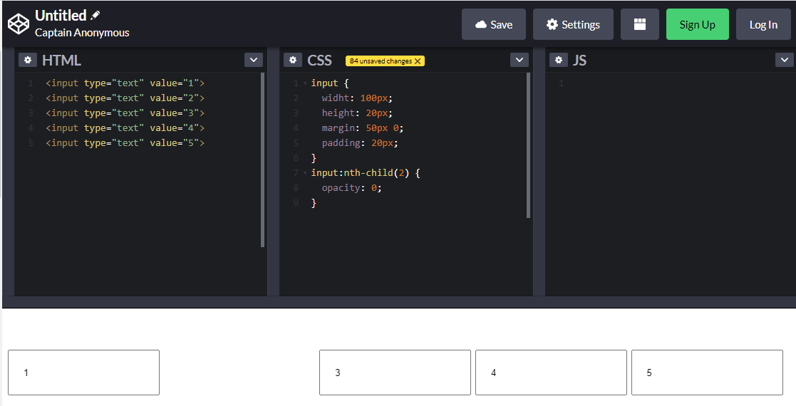 ※ display:none; 속성을 이용하면 화면에서 value="2"인 span태그가 사라진 것을 확인할 수 있다.