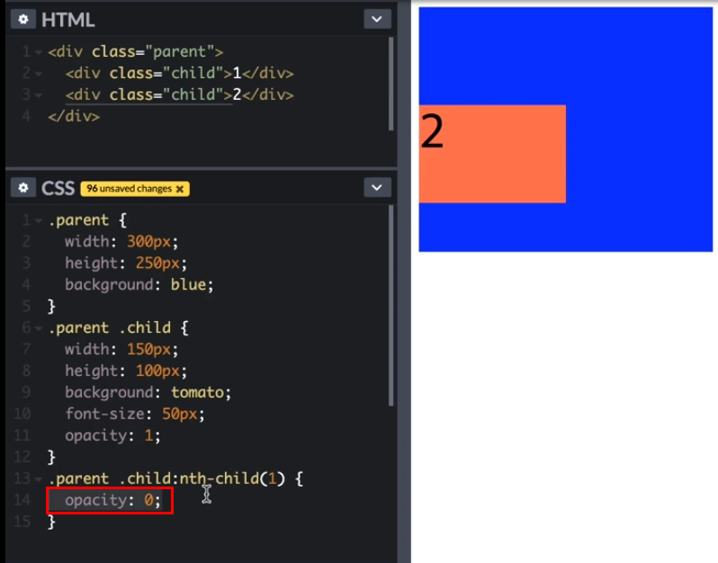 CSS) opacity opacity: 1; opacity: .75; opacity: .5; opacity: 0; display: none;