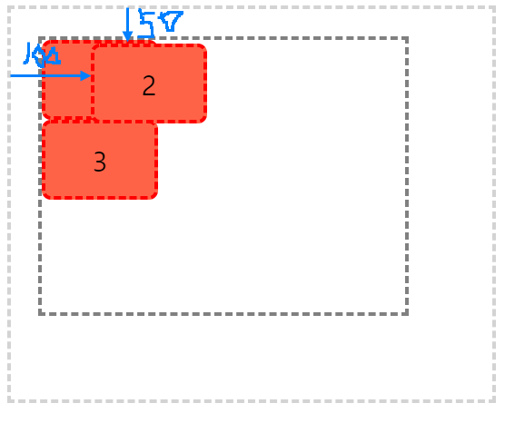 ※ 2번 div뒤에 3번 div가 가려져 있다.