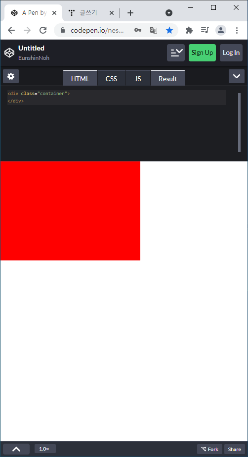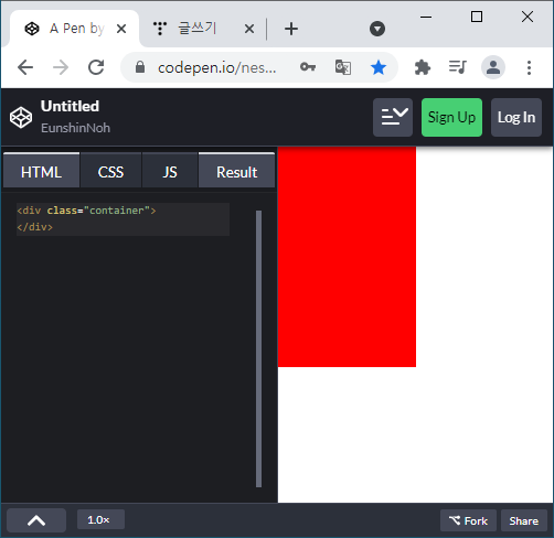 ▷ 세로 값이 가로보다 짧기 때문에 세로 viewport 넓이의 50%를 가로 넓이로 표시