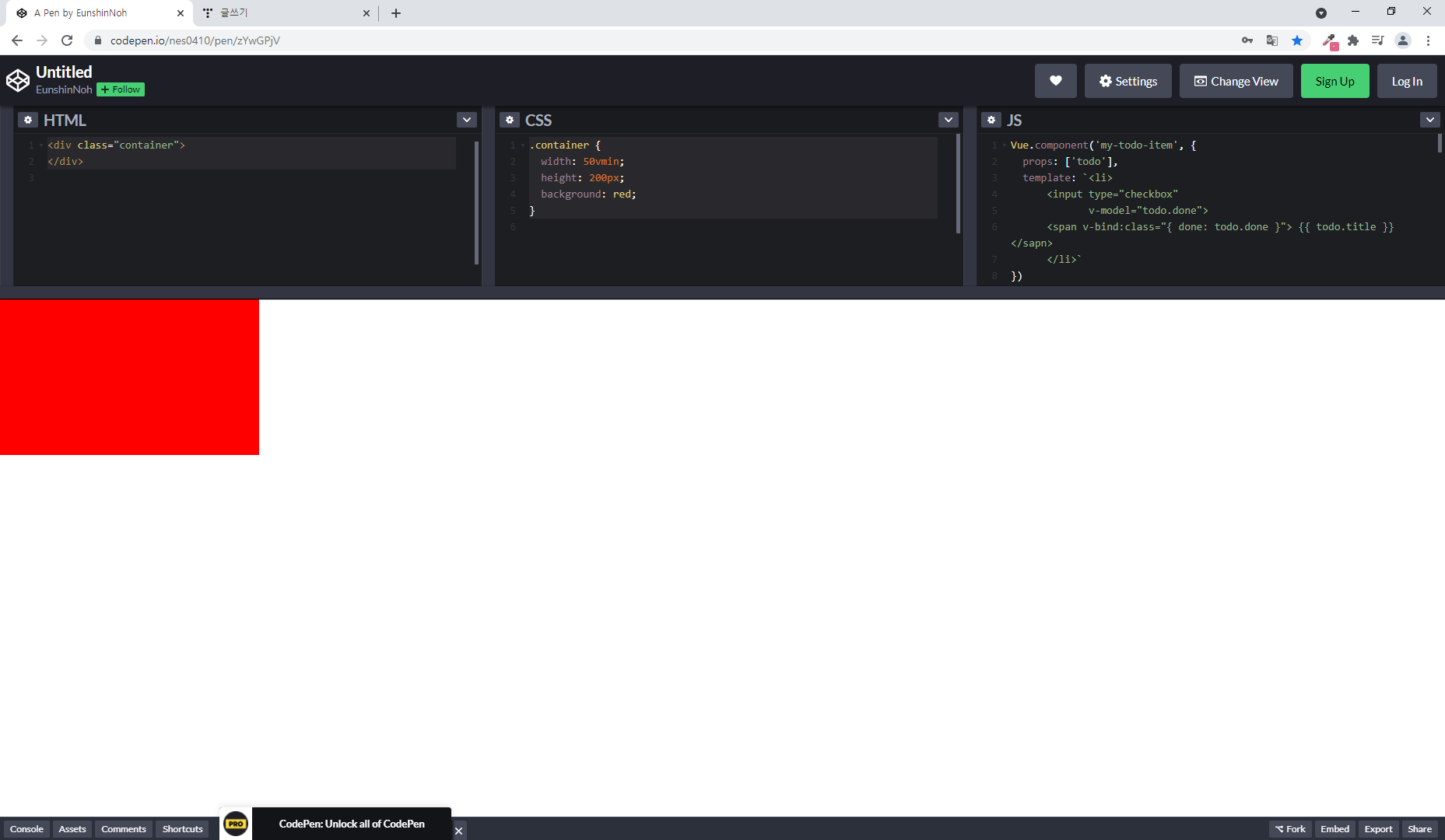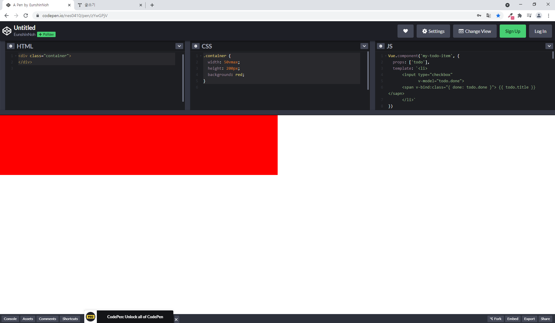▷ 가로 값이 세로보다 길기 때문에 가로 viewport 넓이의 50%를 가로 넓이로 표시