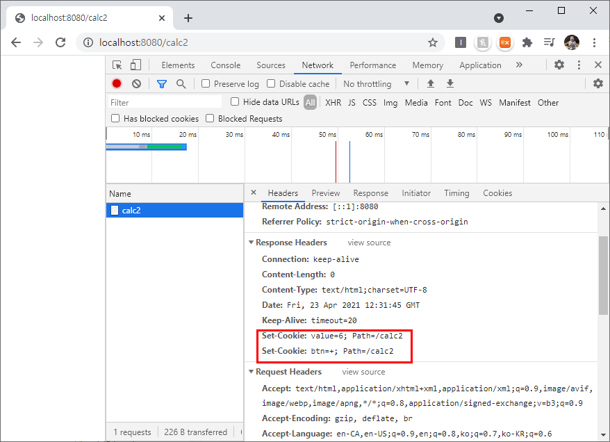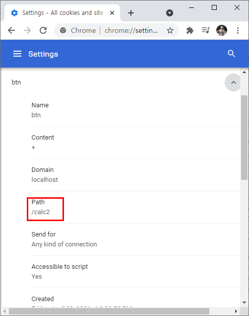 => /calc2로 설정하면 하위의 URL이 호출될 때에만 Cookie값이 전달된다.