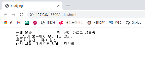 html에서 띄어쓰기 한번 이상 하는 것은 띄어쓰기 하나와 동일하다.