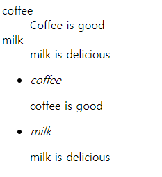 윗부분은 dl dt dd로, 아래는 li, dfn, p로 스타일링
