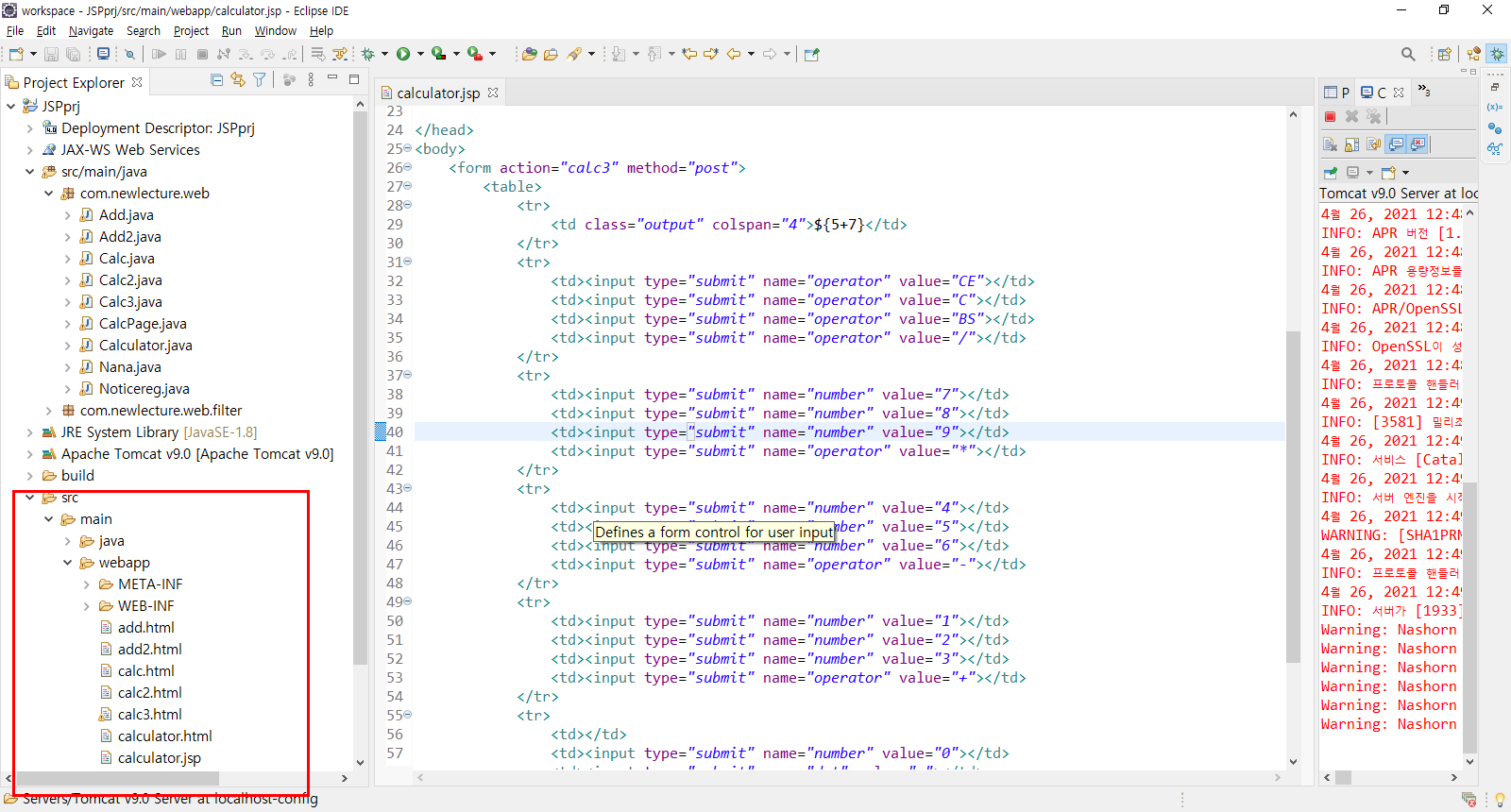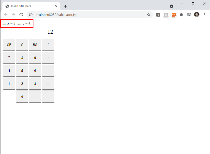 이전에 만들었던 calc3.html 계산기 프로그램이다. 그대로 복사해서 calculator.jsp로 만들었다.