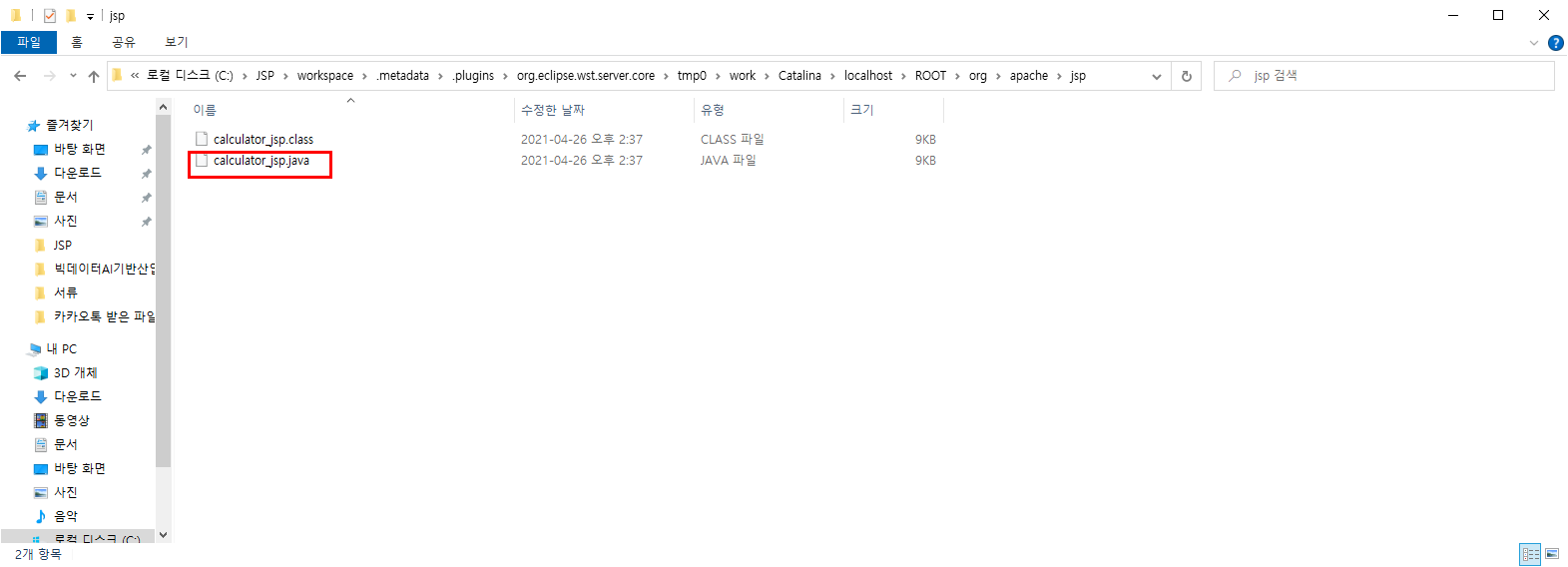 그렇다면 실제 JSP에서 생성된 실행 파일들은 어디에 있을까?