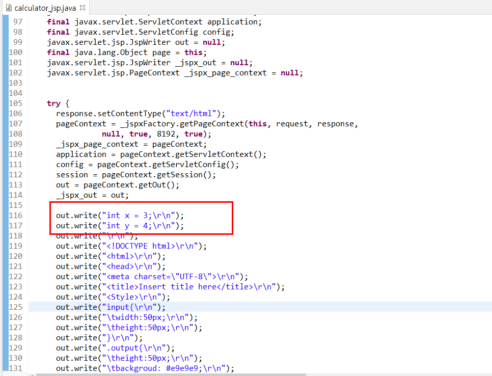 JSP가 만든 코드를 보면 그냥 문자열로 출력해준다.