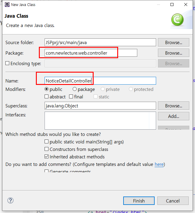 또한 NoticeDetailController.java에서 목록 id를 전달받기 위해서 list.jsp에서 코드를 수정해주어야 한다.