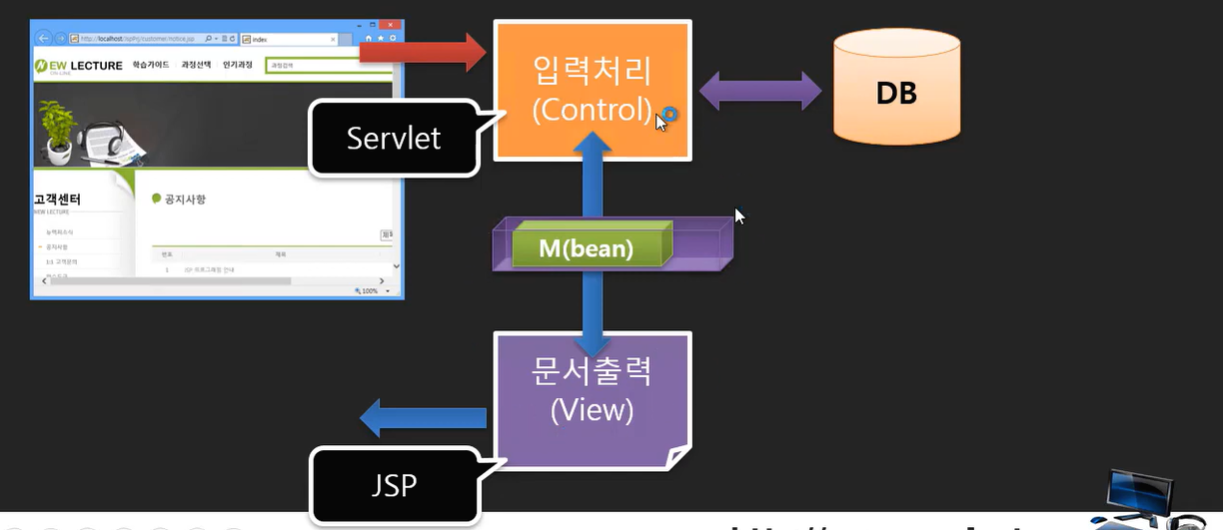 Mode(bean)라는 세션에서는 request라는 저장소, 입력도구를 사용해서