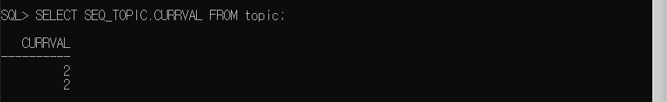 SELECT SEQ_TOPIC.CURRVAL FROM topic;