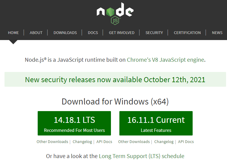 Node.js® is a JavaScript runtime built on Chrome's V8 JavaScript engine.